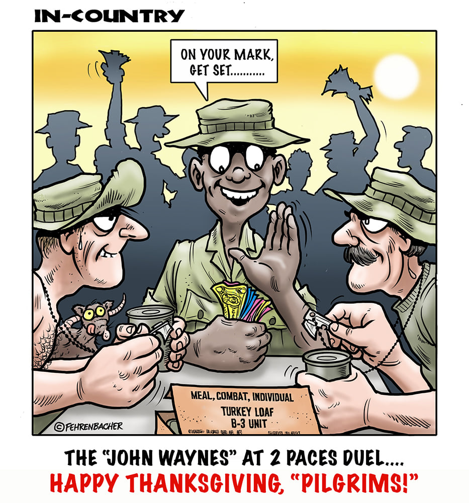 Phil enlisted in the Army in 1965 where he served for years in Vietnam. He became a graphic designer and has worked for the state of Oregon for 26 years. He retired in 2003 and started the Cartoon "In-Country". The cartoons reflect his experiences during his tour of duty in South Vietnam.
