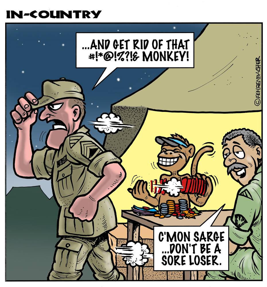 Phil enlisted in the Army in 1965 where he served for years in Vietnam. He became a graphic designer and has worked for the state of Oregon for 26 years. He retired in 2003 and started the Cartoon "In-Country". The cartoons reflect his experiences during his tour of duty in South Vietnam.